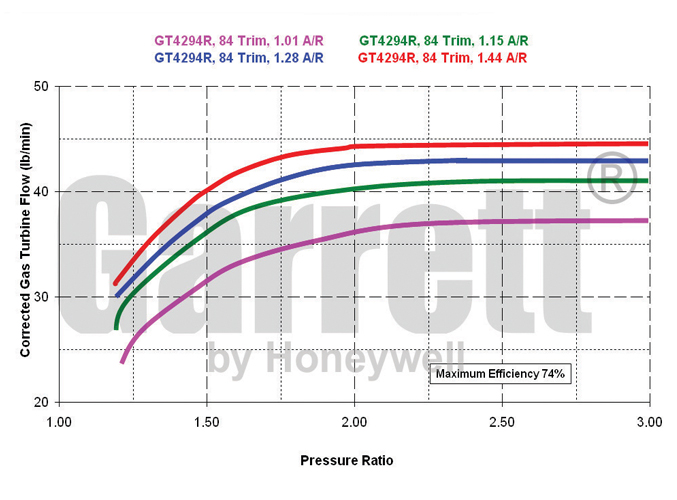- Carter turbine : 1.01/1.15/1.28/1.44 A/R