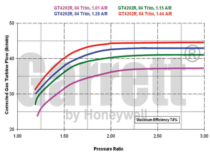 - Carter turbine : 1.01/1.15/1.28/1.44 A/R